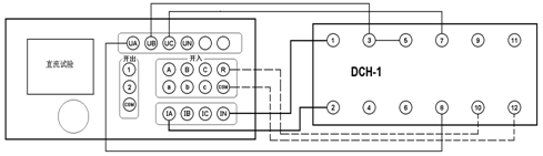 微機(jī)繼電保護(hù)測試儀在直流試驗(yàn)中,用手動(dòng)試驗(yàn)方式,設(shè)置 Ia 為中間繼電器保持電流,Uab為 220V(Ua為+110V,Ub為-110V)作電容充電電壓,Uc為+110V。按下“確認(rèn)”,“開始”輸出220V 電壓。