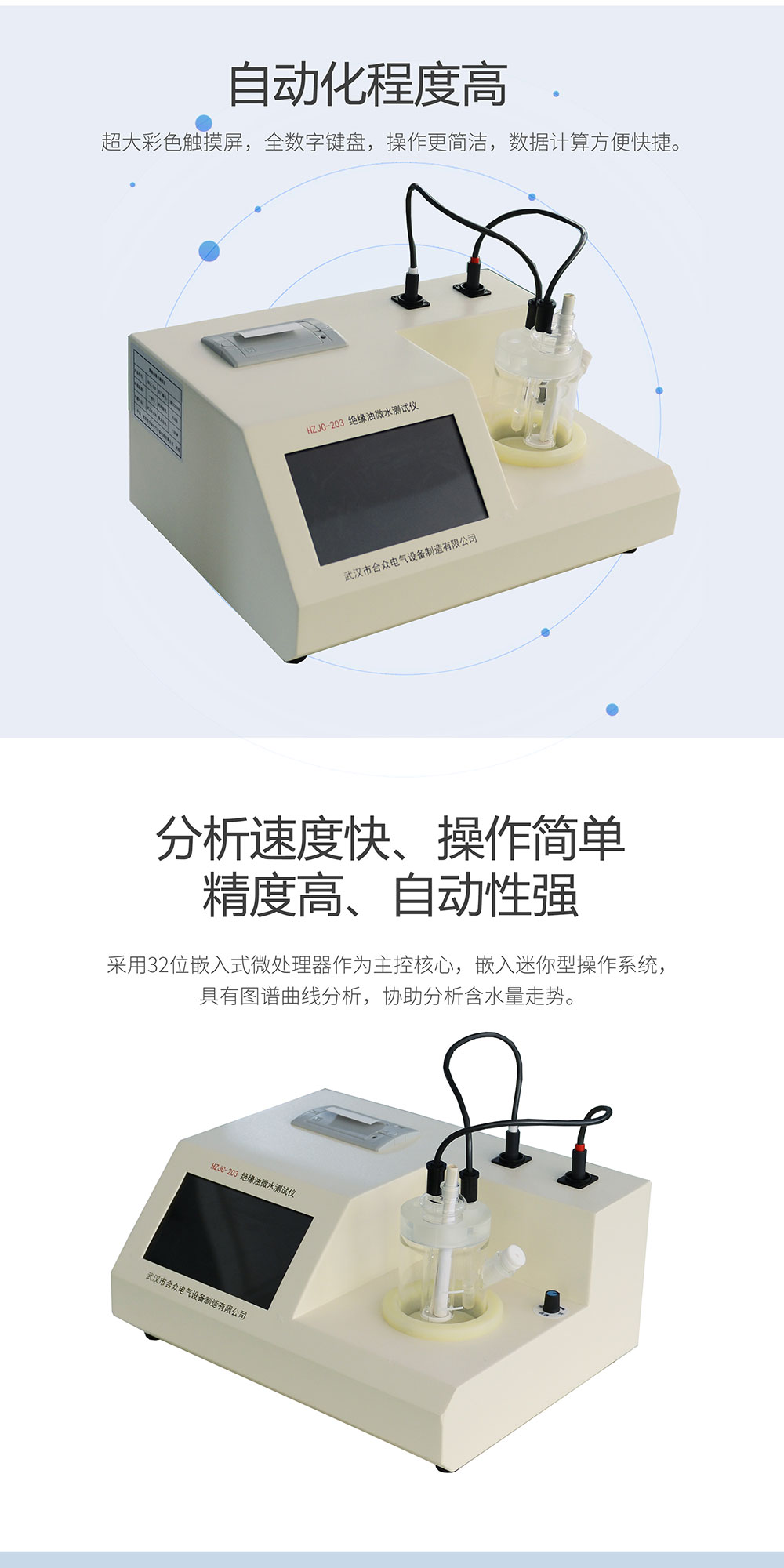 絕緣油微水測試儀,采用卡爾—費(fèi)休庫倫滴定法,對不同物質(zhì)進(jìn)行微量水分的測定,是極可靠的方法。微量水分測定儀成功的應(yīng)用了這一方法,采用了先進(jìn)的自動控制電路,32位嵌入式微處理器作為主控核心,嵌入迷你型操作系統(tǒng)。從而使該儀器工作更可靠,使用更方便。其分析速度快、操作簡單、精度高、自動性強(qiáng)等特點(diǎn)。廣泛應(yīng)用于石油、化工、電力、鐵路、農(nóng)藥、醫(yī)藥、環(huán)保等部門。