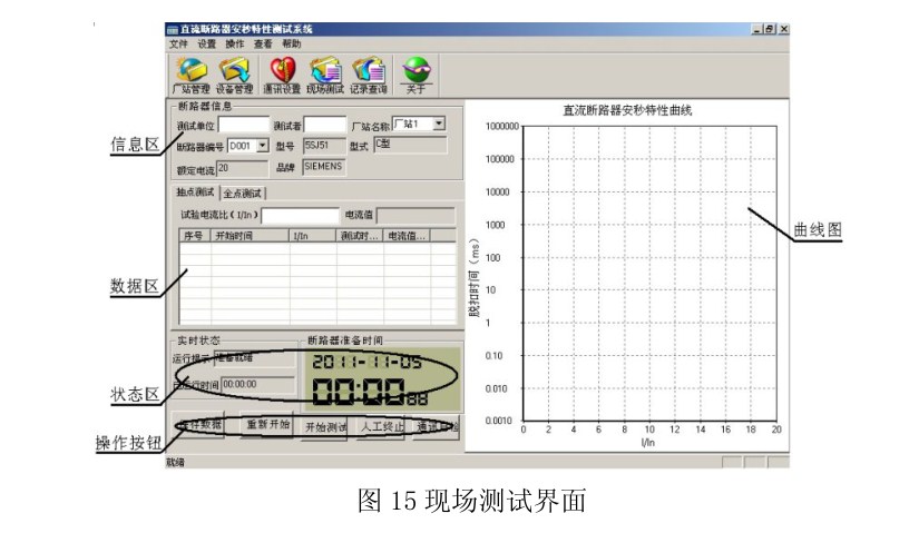 直流斷路器安秒特性測(cè)試儀現(xiàn)場(chǎng)試驗(yàn)操作界面