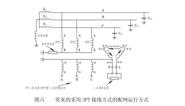 3、退出PT開口三角的消諧裝置。如果經(jīng)過實(shí)測(cè)證明,開口三角所接的某些廠家某些型號(hào)的二次消諧裝置對(duì)測(cè)量結(jié)果沒有影響,則消諧裝置可以不退出運(yùn)行。一般對(duì)于微電腦控制的消諧器,其只有在系統(tǒng)有諧振發(fā)生時(shí)才動(dòng)作,該類消諧器一般對(duì)測(cè)量無影響。