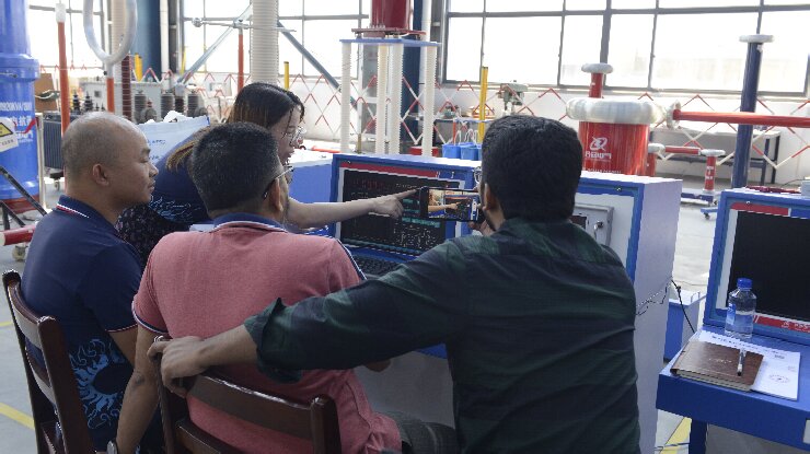 在武漢市合眾電氣技術團隊的陪同下,孟加拉客戶深入參觀了智能化生產車間與高壓實驗室。客戶重點觀摩了局部放電測試系統的現場演示,對其高精度檢測能力與抗干擾性能表示認可;在沖擊電壓發生器測試區,設備穩定的波形輸出與模塊化設計引發了客戶濃厚興趣。客戶現場表示:"合眾電氣的全流程質量控制體系與國際標準接軌,完全符合孟加拉電網試驗項目的嚴苛要求。"
